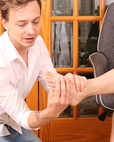 Petite Amateur 41yo MILF boss babe Princess Anna Makes is at the Office, pulling in an underperforming employee for a chat about his work ethic and his sloppy manner of dress. She doesn't think he's taking the job and the office very seriously, and is threatening to let him go when he decides to change tact and offer to do literally anything - including, by way of example, getting on his knees to massage her feet. A little taken back at first, she lets him continue and decides she might have a use for him around her after all as she stands to remove her top and lacy green bra for him to grope and suck her perky MILF tits, before she drops to her knees to suck his cock for a bit. Now that he's warmed up, he returns the favor by getting on his knees and eating her pussy. She takes charge and climbs up to ride his dick reverse cowgirl, then then gets bent over her desk and fucked doggystyle, and down to the floor to finish in missionary where he fills her up with a nice big creampie load